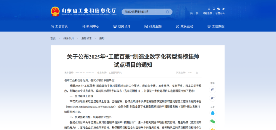 近日,省工业和信息化厅公布了2025年“工赋百景”制造业数字化转型揭榜挂帅试点项目名单,日照4个项目成功入选,分别为山东迈尔医疗科技有限公司口腔医疗产业链医小智数字化供应链平台项目、日照钢铁控股集团有限公司智慧碳管理平台项目、海汇环保设备股份有限公司智能制造系统项目、奇瑞商用车(山东)科技有限公司5G工厂项目,覆盖了医疗、钢铁、环保、汽车等多个重点产业领域。